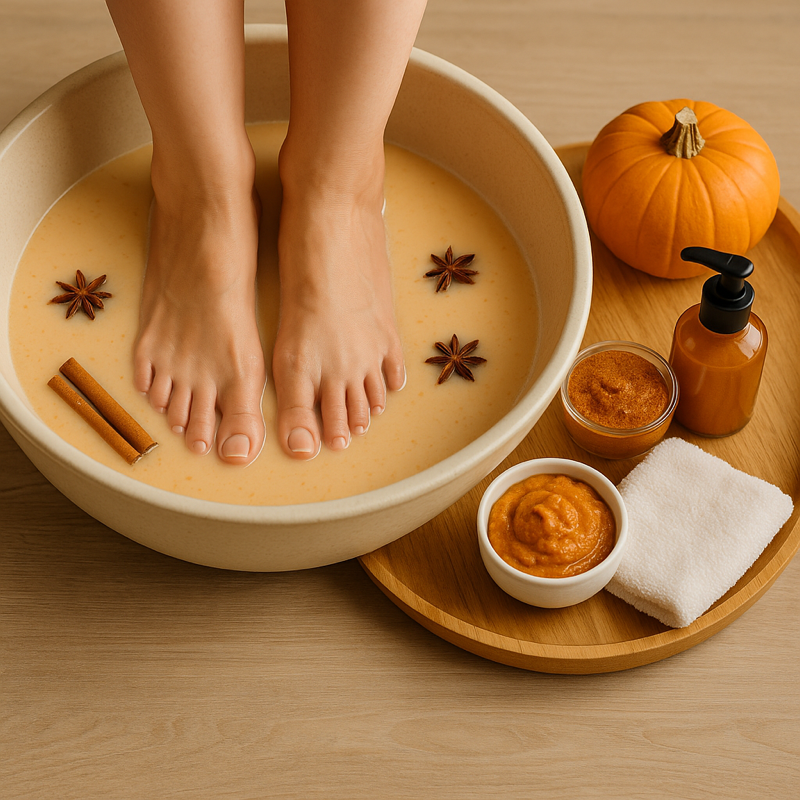 $50 | W/ GEL $65A Cozy Pumpkin spice inspired by the warmth of Fall. Begin with a soothing warm soaking with pumpkin essence to gently soften the skin and relax. Nail and cuticles treatment. Callus remove for smooth comfort. A rich pumpkin spice sugar scrub exfoliation to helps remove dull, dry skin. Continues with a nourishing pumpkin mask wrapped in hot towels and hot stones massage. Finish with polish of your choice.